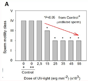 Beim Hertwig-Effekt geht es also darum, die exakte Dosis für die Inaktivierung des Genoms zu evaluieren. Wie wir selber erfahren durften, sollte keine Mischung unterschiedlicher Milchner verwendet werden, da jeder Milchner über individuelle Werte bei der Inaktivierung des Genoms verfügt. Besser ist stattdessen, mit einem einzelnen Milchner zu arbeiten und den Effekt der Inaktivierung durch UVC-Strahlung unter dem Mikroskop zu evaluieren – Checks & Balances. Hierbei stützen wir uns auf die Skala von Chambeyron & Zohar (1990), welche herausgefunden haben, dass die Motilität je nach Bestrahlungsintensität in fünf Klassen eingeteilt werden kann (I-V). Im Idealfall verwenden wir bestrahltes Sperma der Klasse 2, was einer Motilität von 25 bis 50 Prozent der vorhandenen Spermien entspricht. Da die „Milch“ von BachtellachS®-Milchnern zeitweise sehr dicht sein kann, empfiehlt es sich, die zu prozessierenden Spermatozoen mit Seminalplasma vorgängig zu verdünnen.