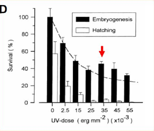 Als wäre die Sache nicht schon kompliziert genug, entscheidet ein besonderer Trick bei der Inaktivierung des männlichen Genoms im Spermatozoon über Erfolg oder Misserfolg. Die Dosis der UVC-Strahlung zur Inaktivierung des Genoms ist entscheidend! Dabei beachten wir zwei Faktoren. Erstens die Energiestärke und zweitens die Expositionsdauer. Ist die Dosis zu schwach, wird das Genom nicht genügend inaktiviert und als Resultat bekommen wir dann triploide Nachkommen. Diese wären für die Weiterzucht dann nicht mehr zu gebrauchen. Ist die Dosis zu stark, sterben die Spermatozoen ab und die Eier können damit nicht befruchtet werden. In der Folge wird der Zellteilungsprozess nicht aktiviert und es entstehen sogenannte haploide Zygoten, welche spätestens beim Schlupf absterben, da haploide Organismen nicht lebensfähig sind.